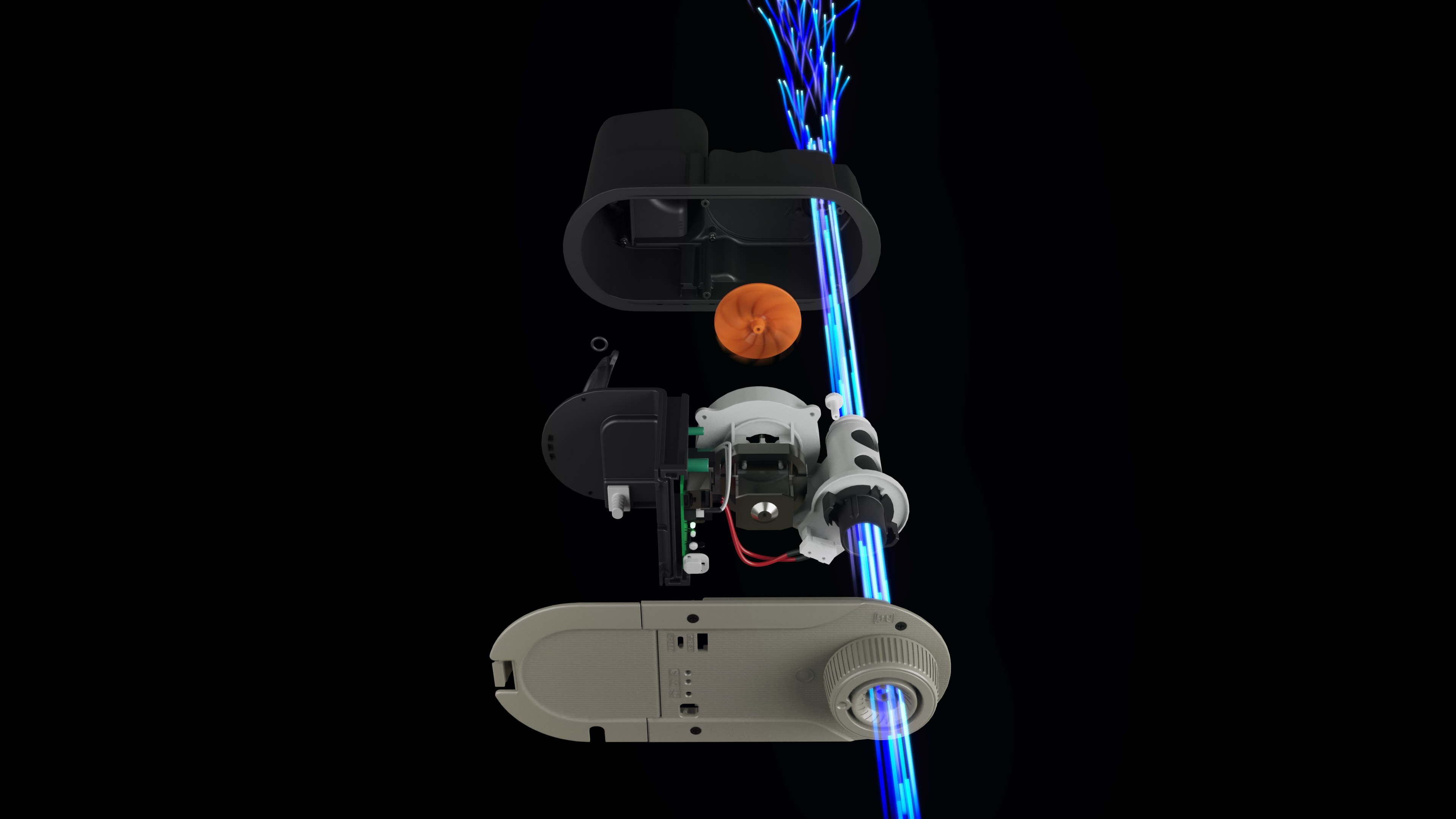 The goal was to create a seamless shot that begins with live-action product footage and transitions into an exploded view revealing the internal components and airflow in motion. We combined VFX and 3D motion design, using Unreal Engine to rapidly build animation, materials, lighting, and color with high-quality real-time rendering and integrated VFX. This enabled real-time creative direction and reduced the need for extensive previewing and compositing tests.